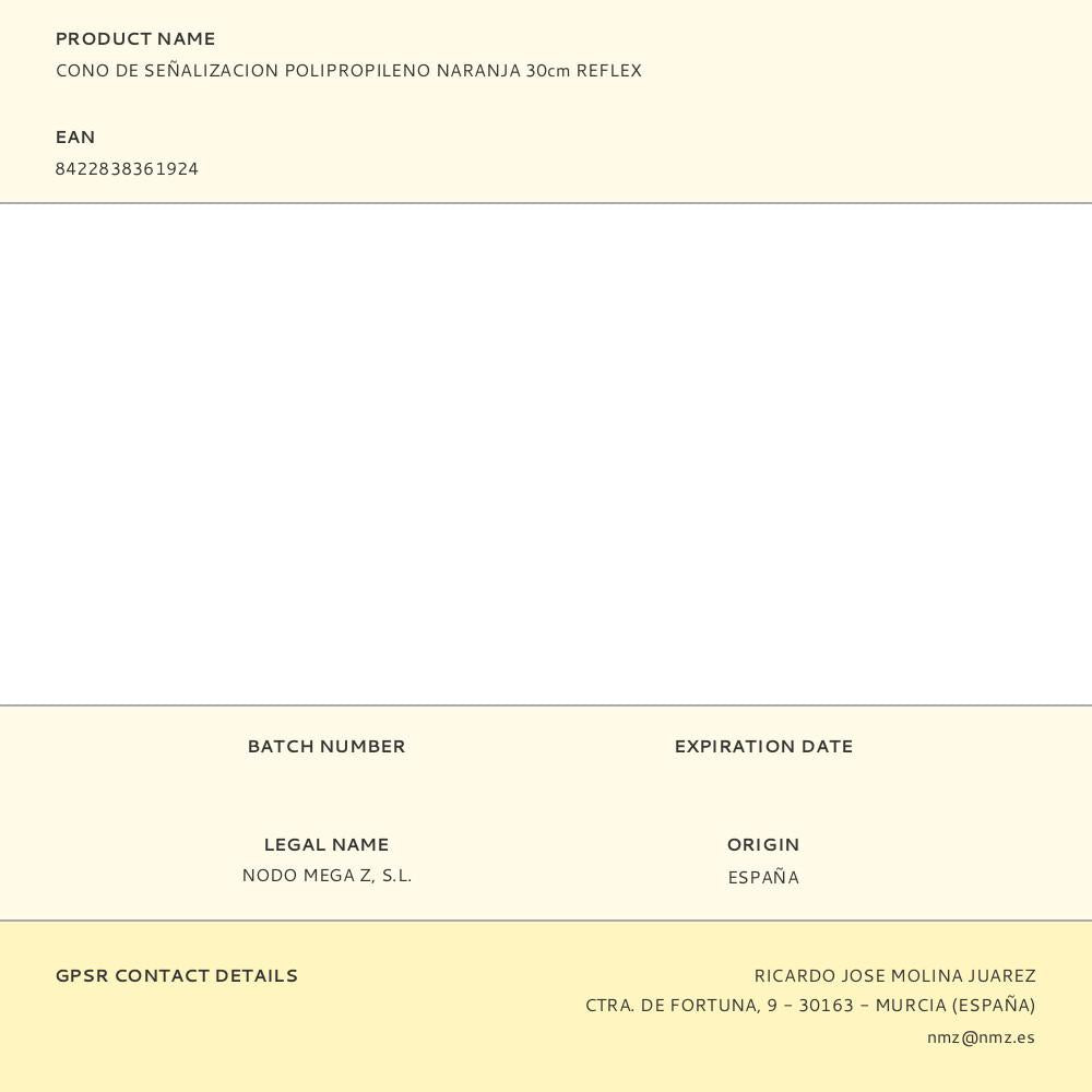 Cone de sinalização de polipropileno laranja 30cm reflex