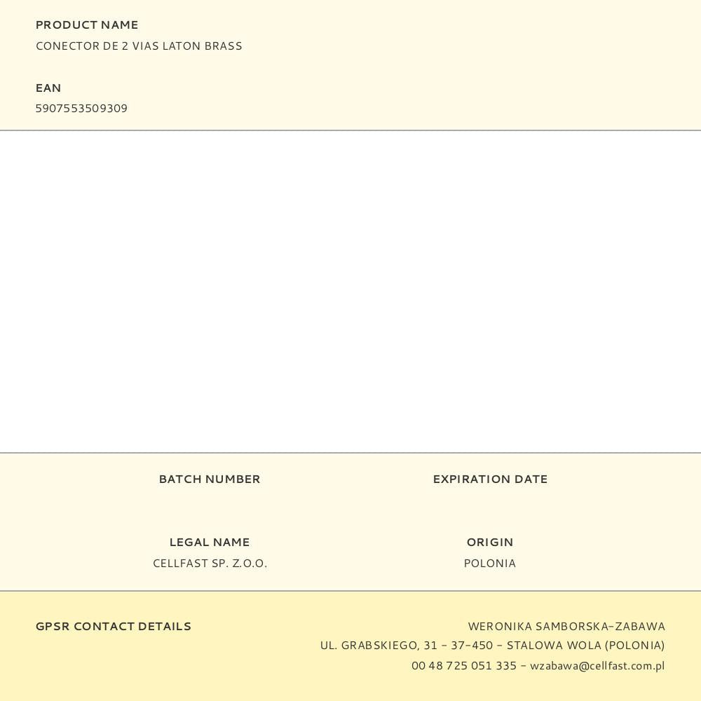 CONECTOR DE DUAS VIAS LATÃO BRASS CELLFAST