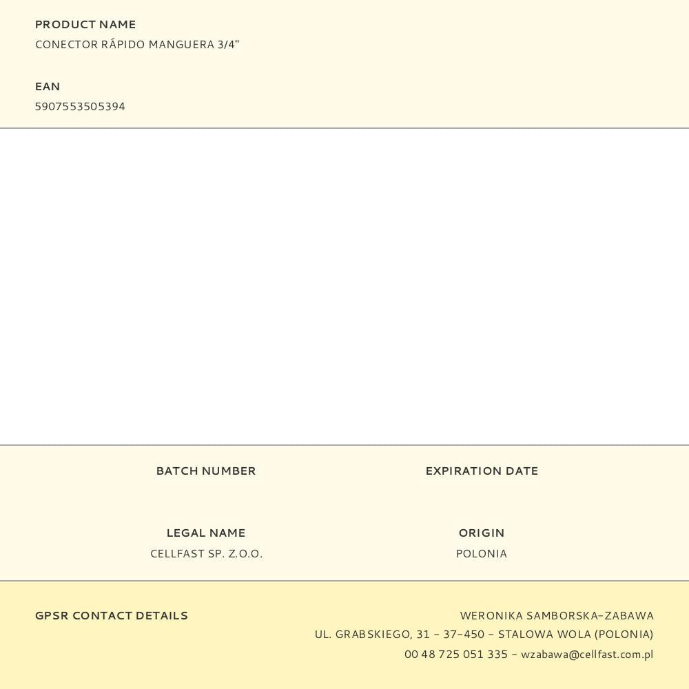 Conetor rápido para mangueira ø19mm (3/4´´).cellfast