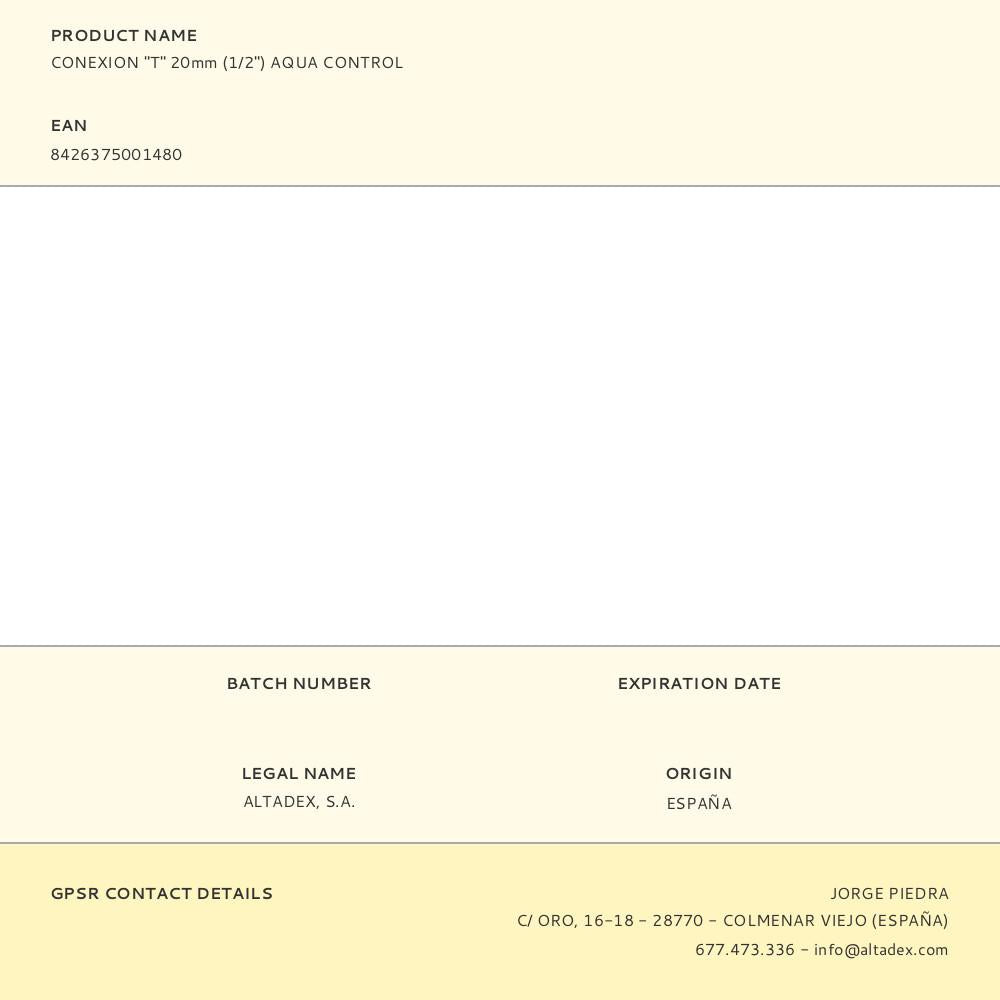 Conexao ´´t´´ 20mm (1/2´´) material: polietileno. tratamiento anti uv. (rotado granel). aqua control