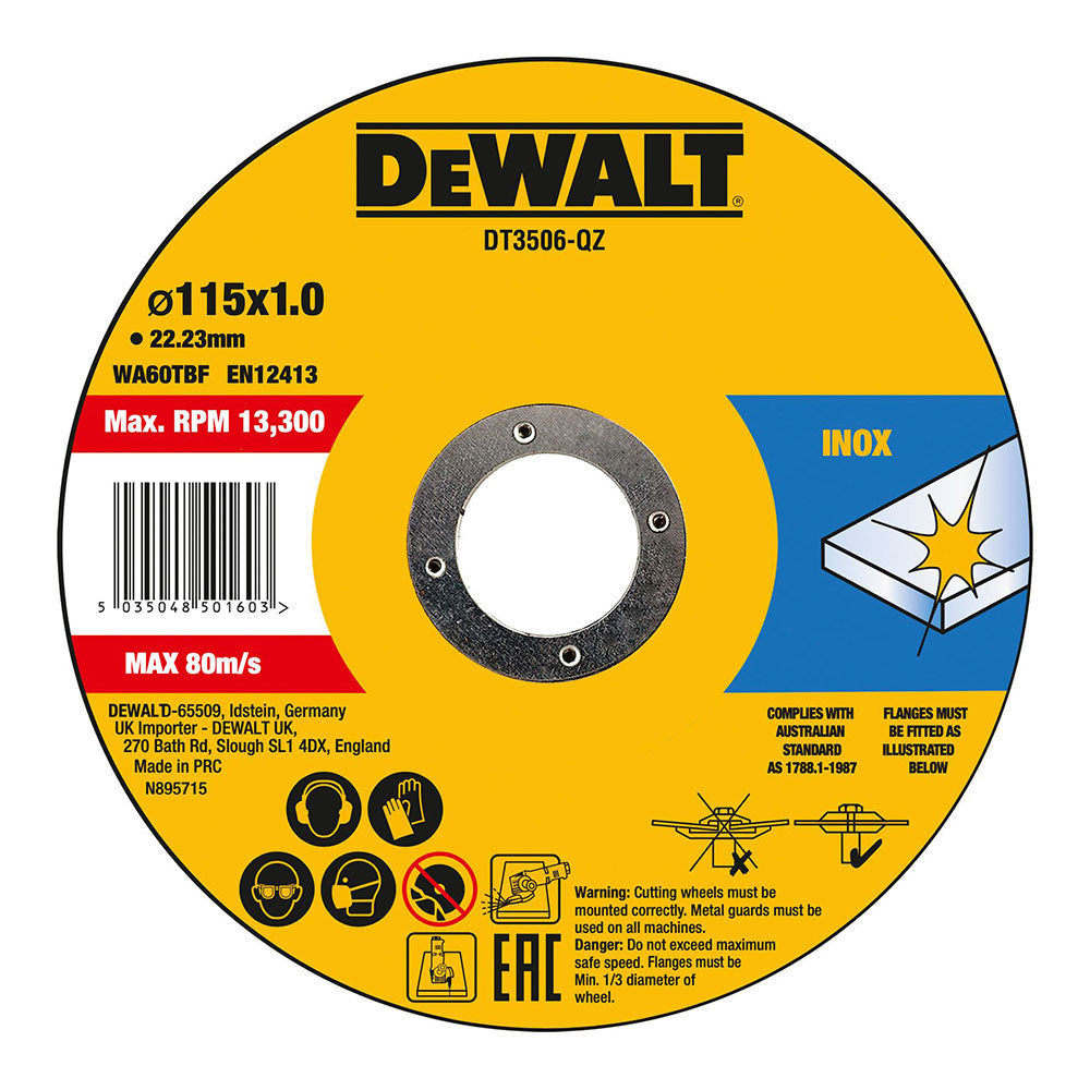 CONJUNTO 10 DISCOS DE CORTE PARA AÇO INOX.Ø115X1X22,23MM DT3506-Q