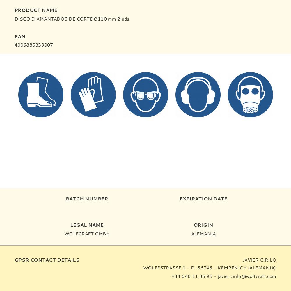 CONJUNTO DE DISCOS DE CORTE DE DIAMANTE Ø110MM 2UNID DE 2 PEÇAS W