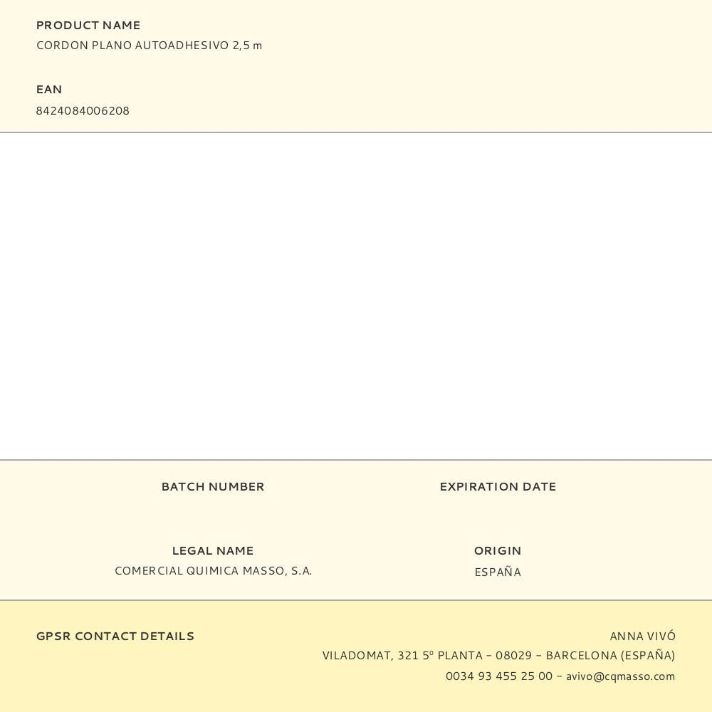 CORDÃO PLANO AUTO-ADESIVO 2,5M FUEGONET MASSÓ