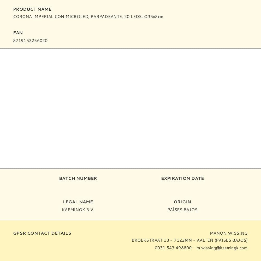 COROA IMPERIAL COM MICROLED INTERMITENTE, 20 LEDS, Ø35X8CM. EVERL