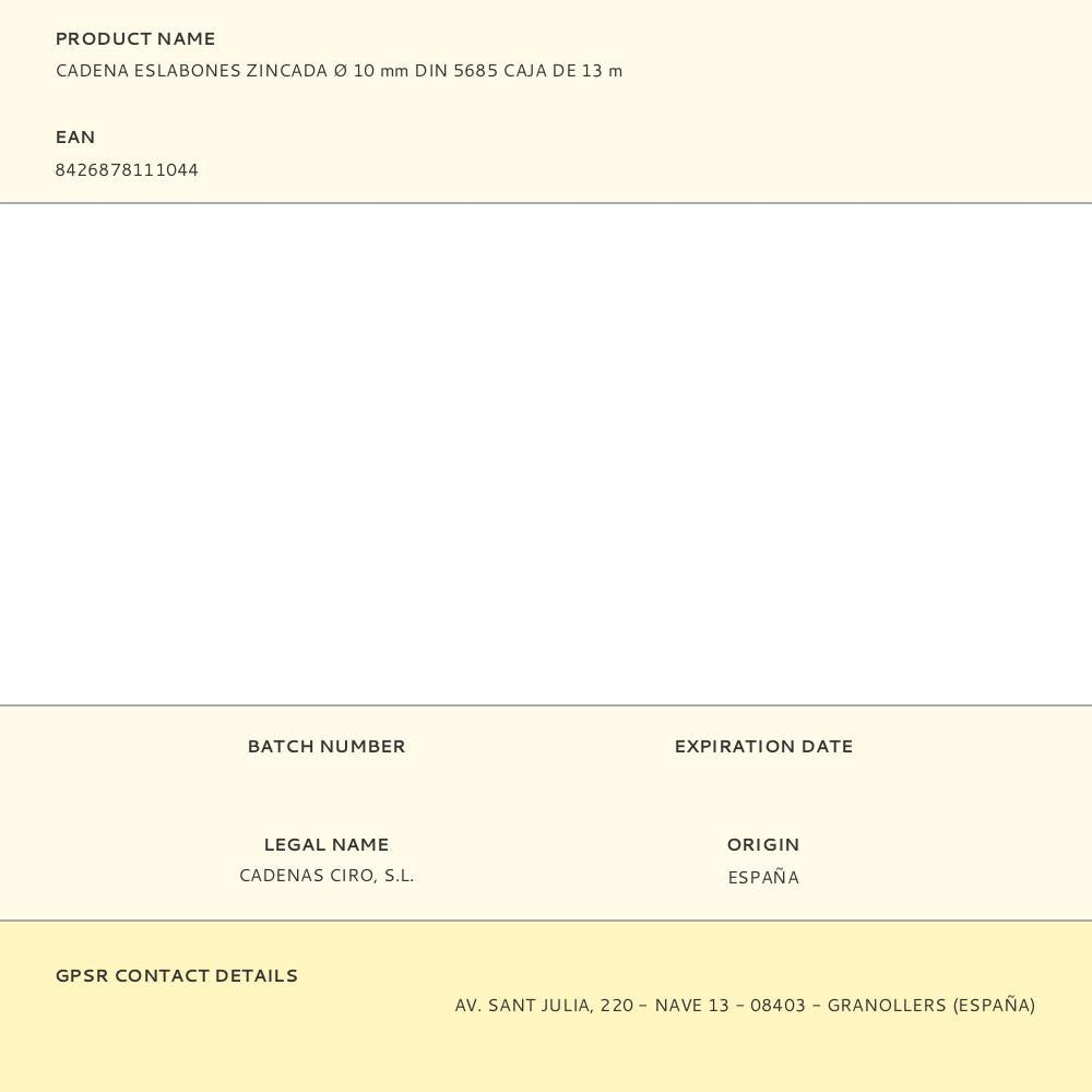 CORRENTE DE ELO ZINCADO Ø 10 MM DIN 5685 CAIXA DE 13 M