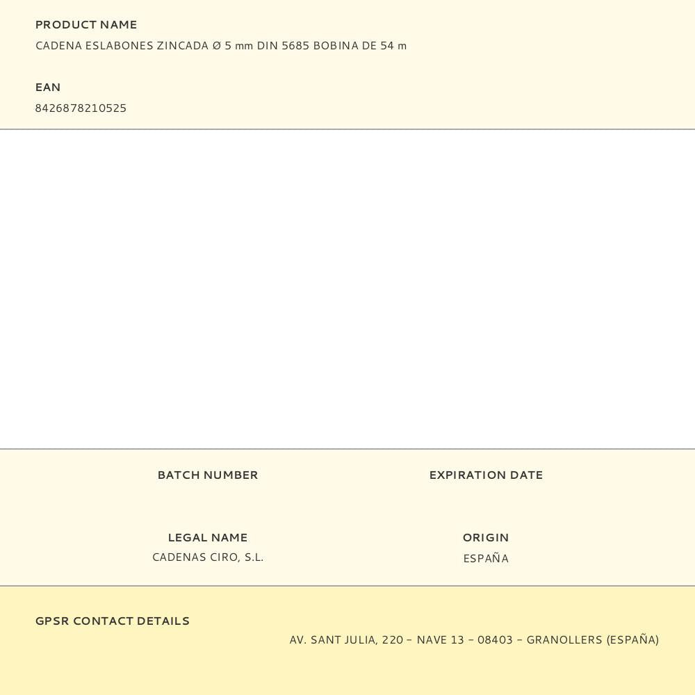 CORRENTE DE ELO ZINCADO Ø 5 MM DIN 5685 54 M BOBINE