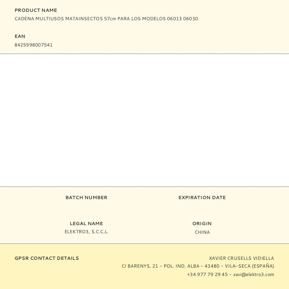 CORRENTE MATA INSETOS 57CM PARA OS MODELOS 06013 06030