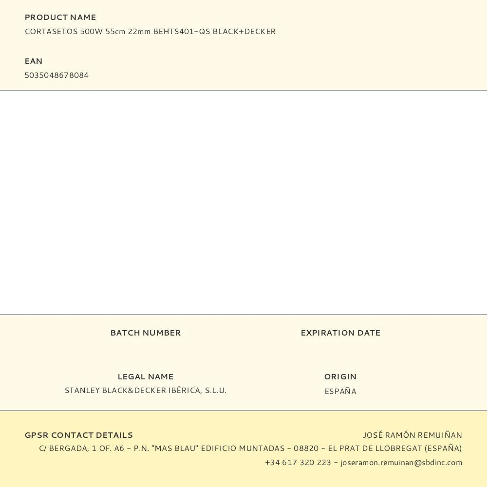 CORTA-SEBES 500W 55CM 22MM BEHTS401-QS BLACK+DECKER