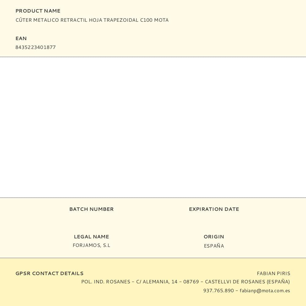 CORTADOR METALICO RETRATIL LAMINA TRAPEZOIDAL C100 MOTA