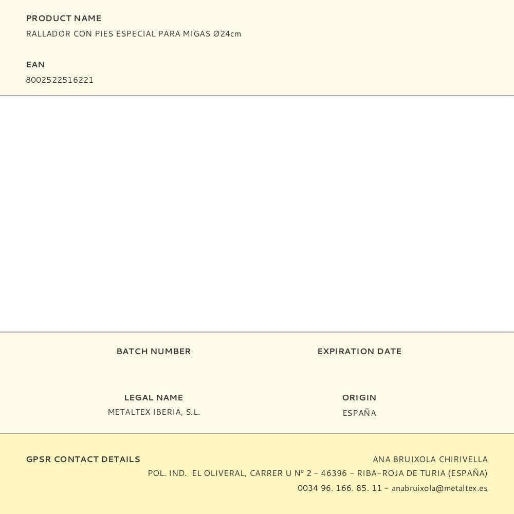 CORTADOR RALADOR COM PES ESPECIAL PARA MIGALHAS Ø24CM