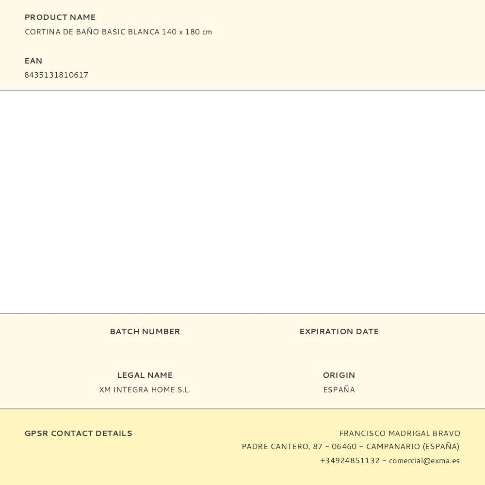 Cortina de banheira e duche 100% impermeável em pvc, branca. ideal para usar como forro de duche. anti-molde, pode ser lavado na máquina de lavar roupa e contém 10 anéis. dimensões 140 x 180 cm