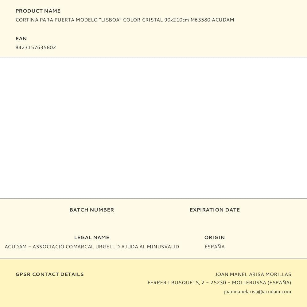 CORTINA PARA PORTA MODELO ´´LISBOA´´ TRANSPARENTE 90X210CM M635