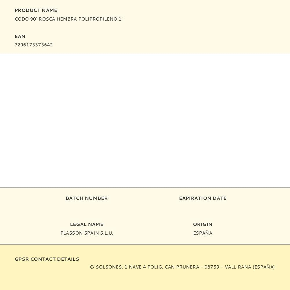 Cotovelo 90° rosca fêmea polipropileno 1´´