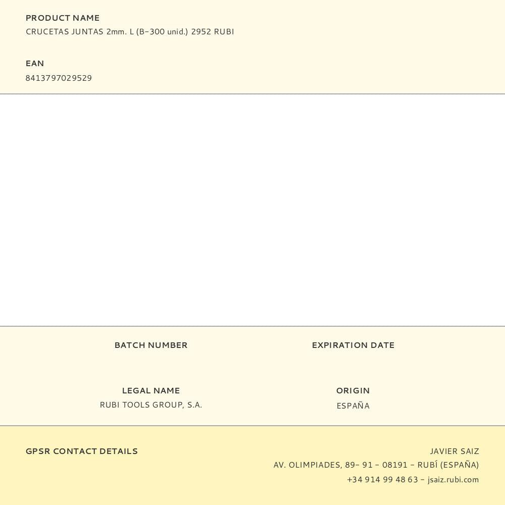 CRUZETA JUNTAS 2MM L (B-300 UNID.) 2952 RUBI
