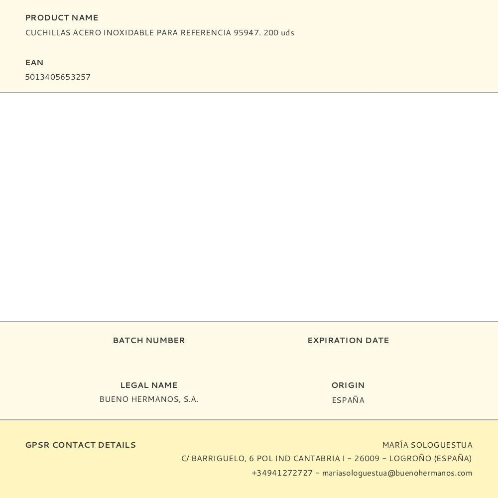 CUCHILLAS ACERO INOXIDABLE PARA REFERENCIA 95947. 200 UNIDADES