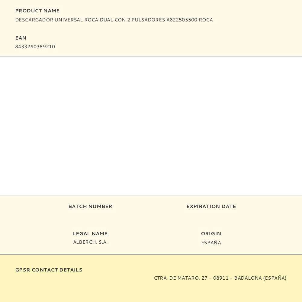 DESCARREGADOR UNIVERSAL ROCA DUAL COM 2 BOTÕES A822505500 ROCA