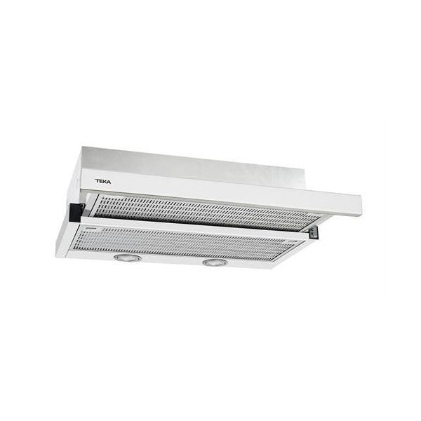 Teka CNL 6415. Potência máxima de extração: 385 m³/h, Tipo de extração: Recirculante, Classe de eficiência de filtragem de gorduras: D. Tipo: Semi embutido (deslizante), Cor do produto: Branco, Material do corpo do produto: Aço inoxidável. Tipo de filtro de gordura: Alumínio. Potência das lâmpadas: 1,5 W, Número de lâmpadas: 2 lâmpada(s), Tipo da lâmpada: LED. Classe de eficiência energética: A, Consumo de energia anual: 26 kWh, Potência do motor: 110 W