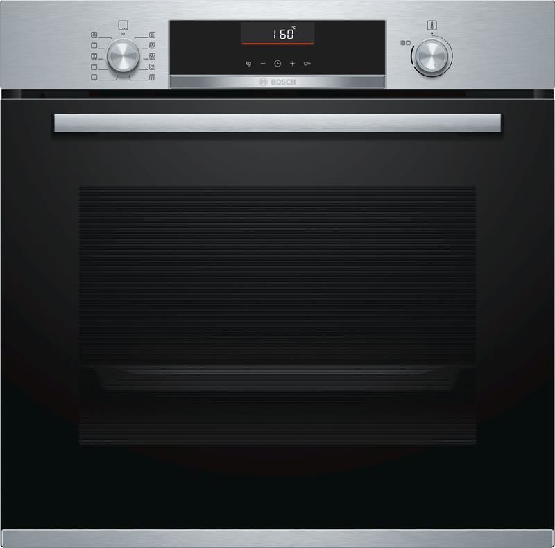 Bosch Serie 6 HBA5360S0. Tamanho do forno: Médio, Tipo de forno: Forno elétrico, Capacidade interior do(s) forno(s) totais: 71 l. Local de colocação: Embutido, Cor do produto: Aço inoxidável, Tipo de controlo: Rotativo, Toque. Tipo de relógio: Electrónico, Tipo de temporizador: Digital, Modos do temporizador: Cronómetro, Temporizador. Classe de eficiência energética: A, Consumo energético (convencional): 0,97 kWh, Consumo energético (convecção forçada): 0,81 kWh. Quantidade de lâmpadas: 1 lâmpada(s)