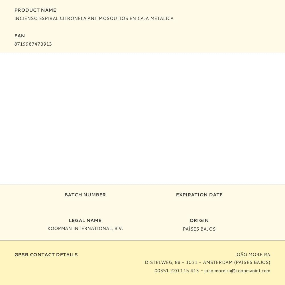 INCENSO ESPIRAL CITRONELA ANTI-MOSQUITO EN CAIXA METÁLICA