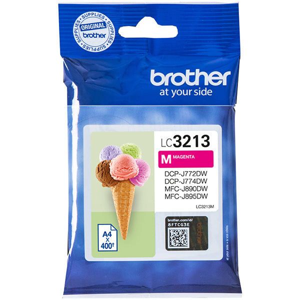 Brother LC-3213M. Tipo de cartucho: Rendimento alto (XL), Tipo de cor de tinta: Tinta à base de pigmentos, Capacidade de páginas de cor: 400 páginas